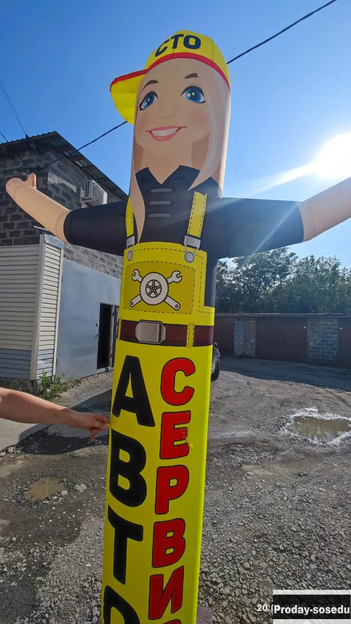 Надувная фигура для автосервиса может быть эффективным инструментом для привлечения внимания клиентов. Такие фигуры часто используются для рекламы и могут быть выполнены в различных формах, например, механика или других тематических образов. Они помогают выделить автосервис на фоне конкурентов и могут быть установлены на улице или вблизи входа в сервис. Стоимость указана за высоту 3 метра, в виде столбика. В комплектацию входит: Сумка переноска. Фигура (оболочка) Фирменная металлическая подставка Нагнетатель воздуха. 2 шт машущие руки к машущим фигурам ( одна на фигуре, вторая в подарок) Колышки и трос для крепления Инструкции и гарантийный талон Под заказ можно сделать в любом цвете и с любыми надписями.